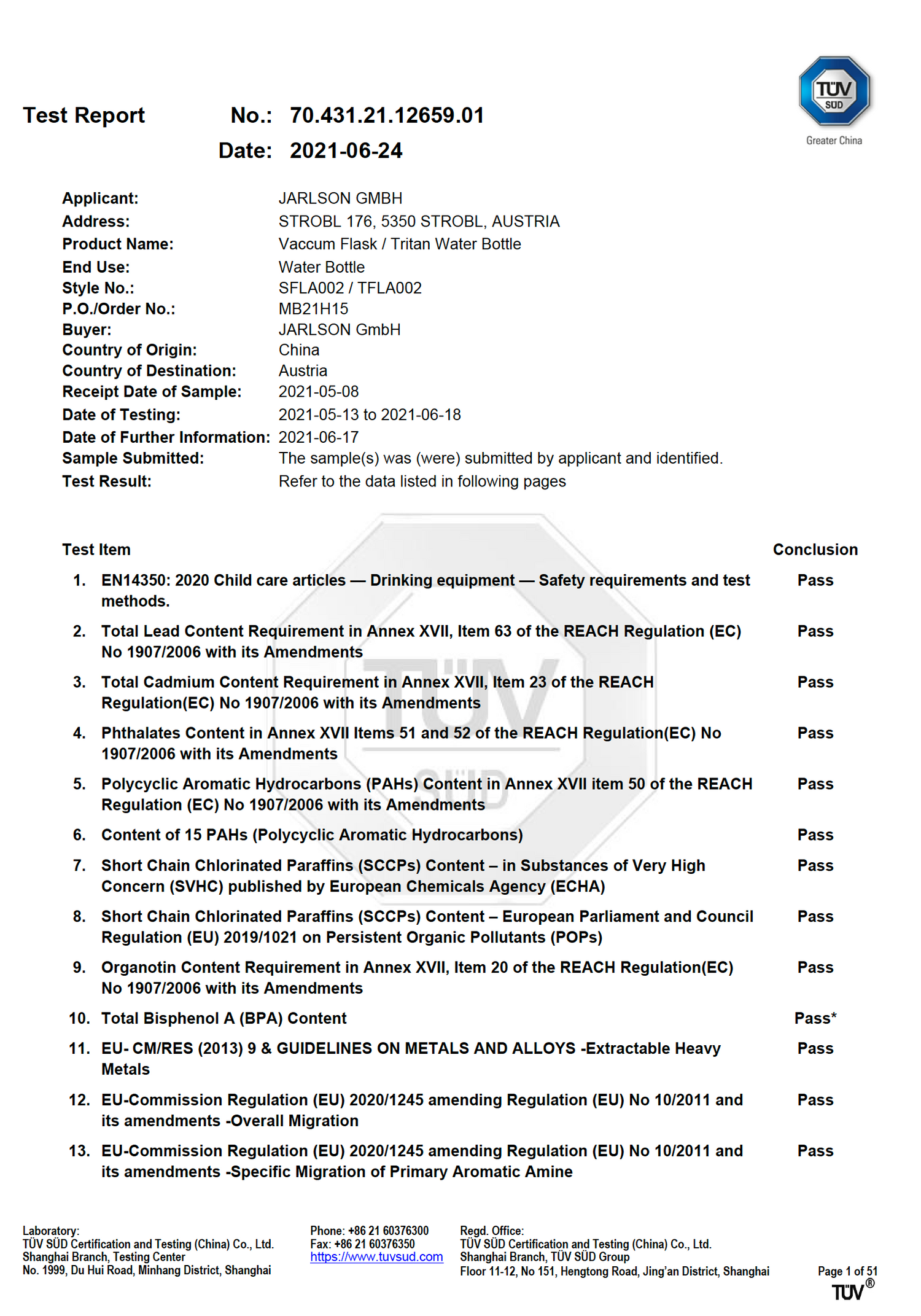 Unsere Produkte entsprechen höchsten europäischen Standards. Die Produkte wurden durch das Prüfinstitut TÜV auf mechanische Anforderungen, Schwermetalle, Phthalate, BPA und vieles mehr geprüft. Die Qualitätsprüfungen bestätigen die höchste Sicherheit unserer Produkte für Kinder. Die vollständigen Prüfberichte stehen anschließend zum Download bereit.